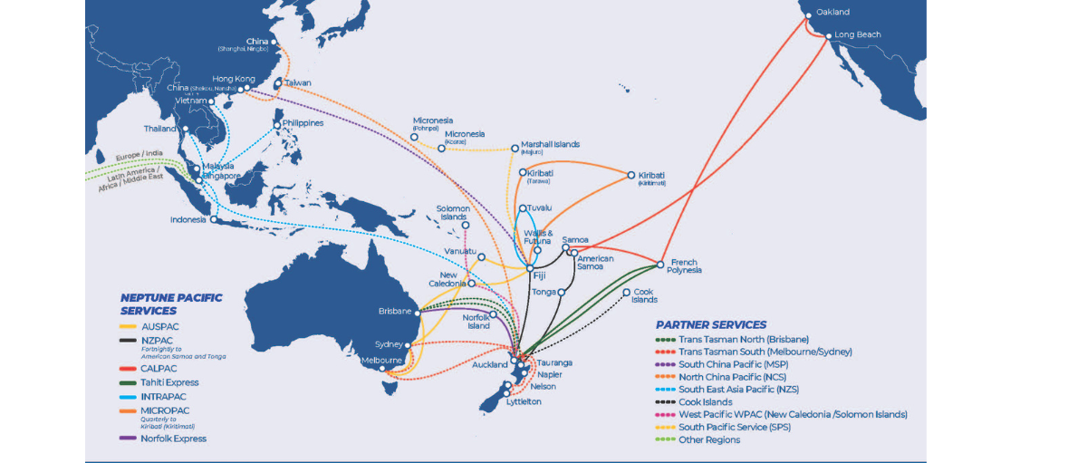Neptune Pacific Direct Line offers the most comprehensive range of shipping services linking the South Pacific Islands with New Zealand, Australia, West Coast USA, Asia, Latin America, Middle East and Europe. Our NZPAC, AUSPAC & CALPAC services launched in 2024, provide improved connectivity, speed, reach and frequency across our South Pacific home. Find out more with the Service Overviews below: