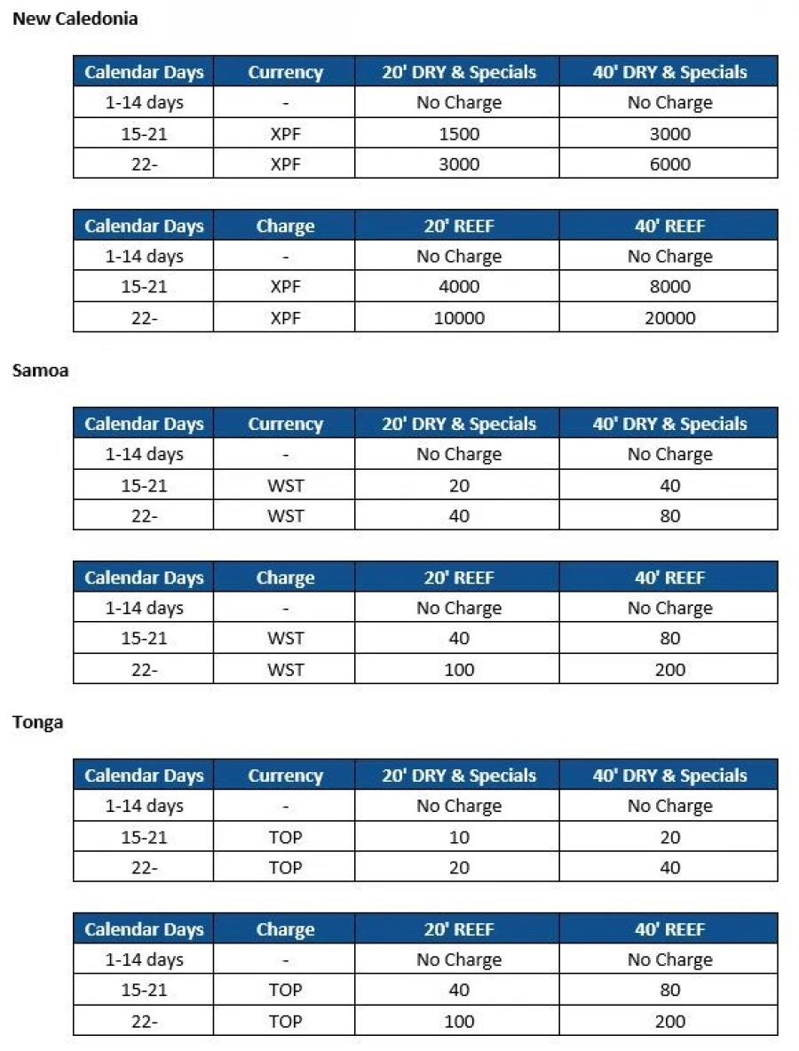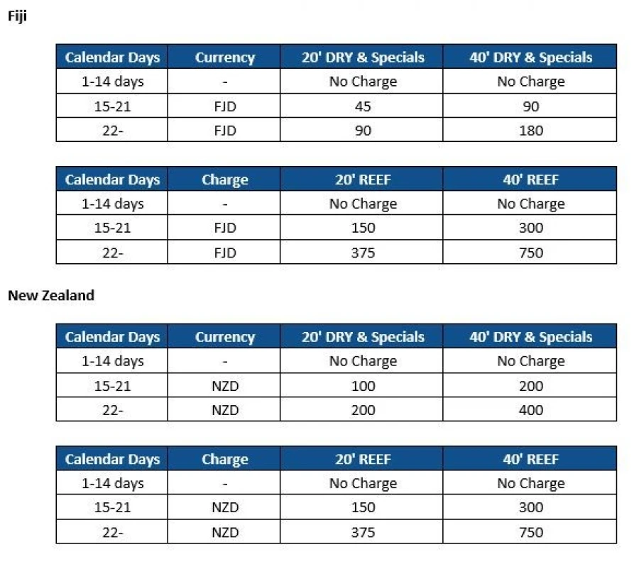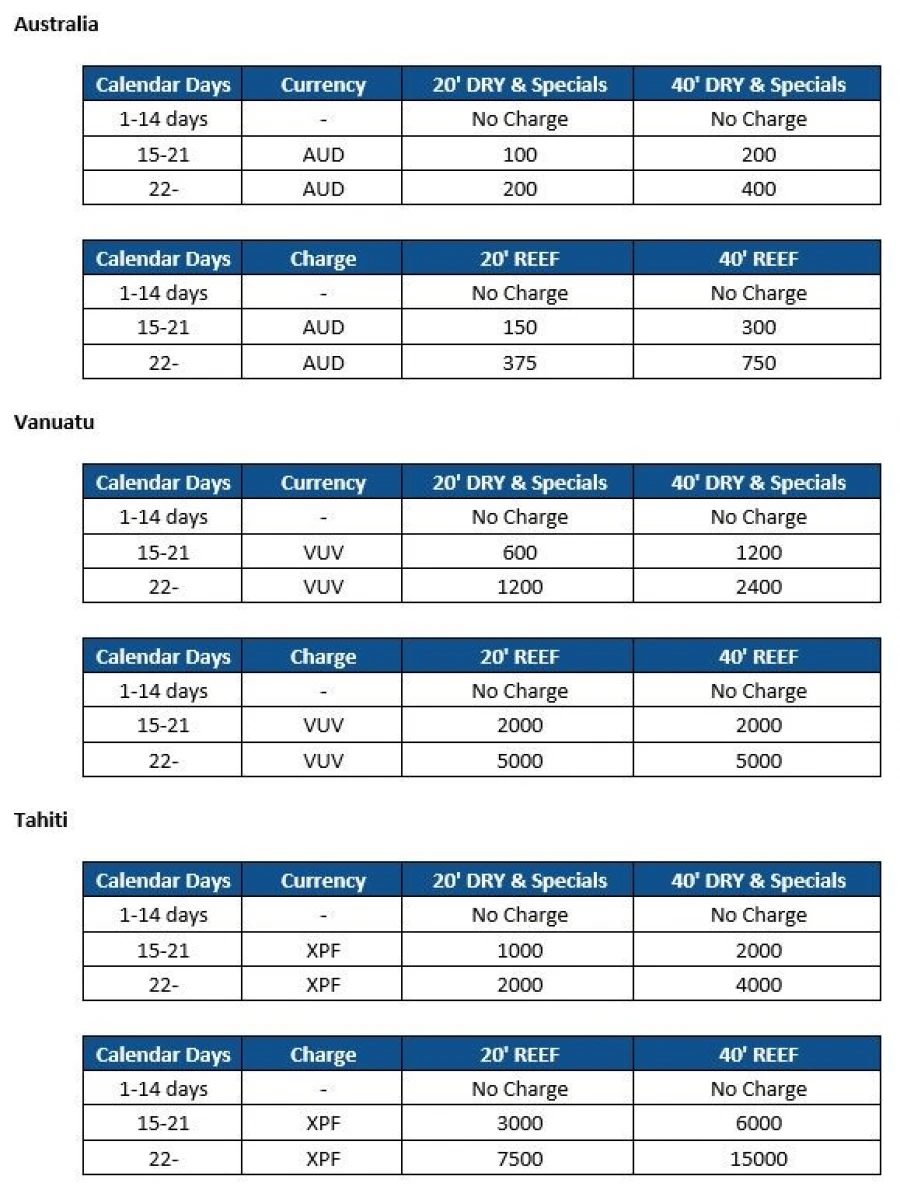 Please find below the up-to-date import container hire free period and daily rates for the South Pacific Islands, New Zealand, and Australia. In effect since 1-April-2023.