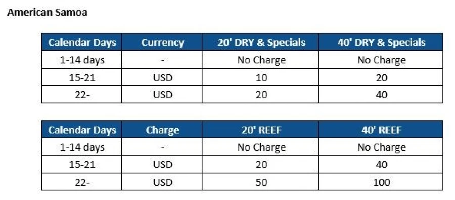 Note: Free-time is listed in Business Days. Once on detention, charges are billed per Business Day.